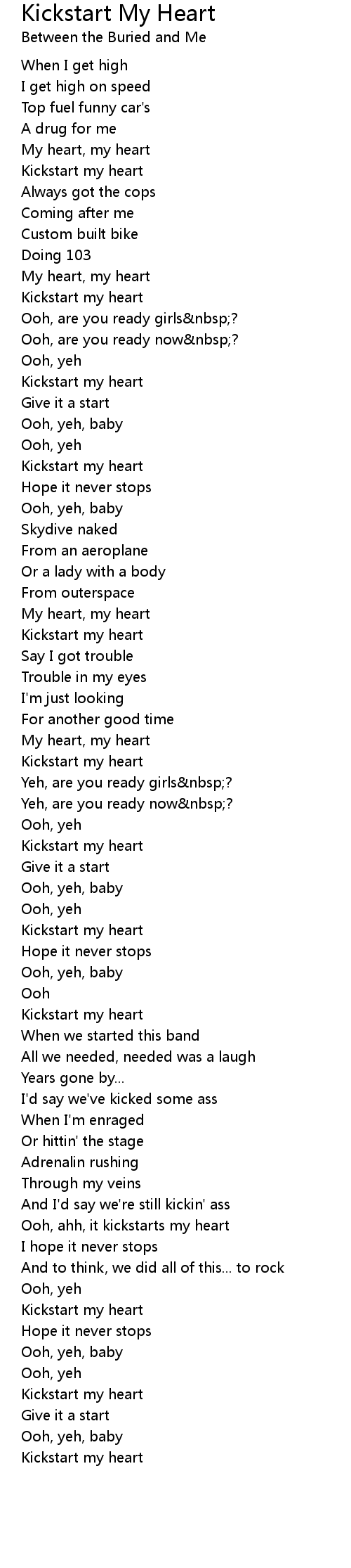 Ooh, ahh, it kickstarts my heart |