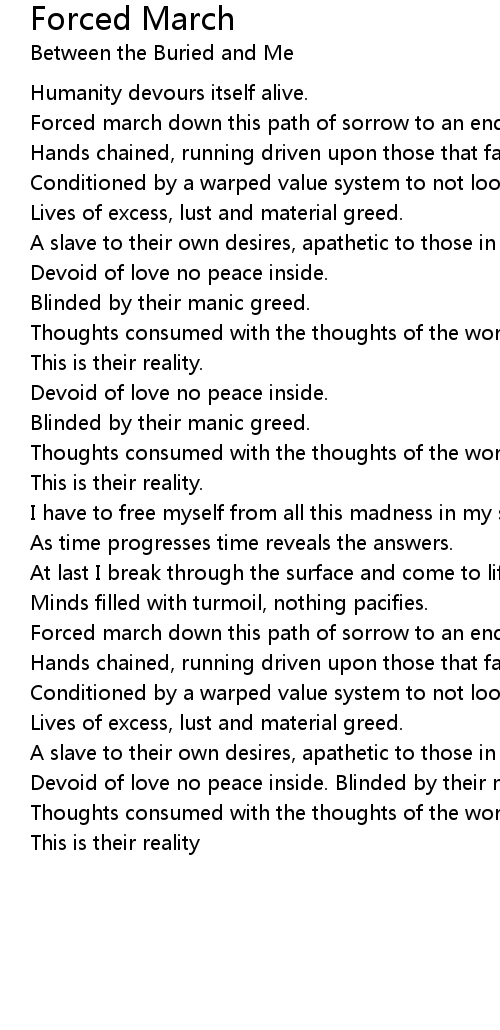 Forced march down this path of sorrow to an end that doesn't justify. |