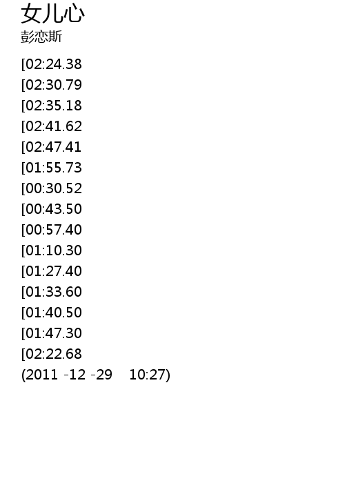 | [03:52.19][02:24.38][00:01.06] | 女儿心 - - - 彭恋斯 |