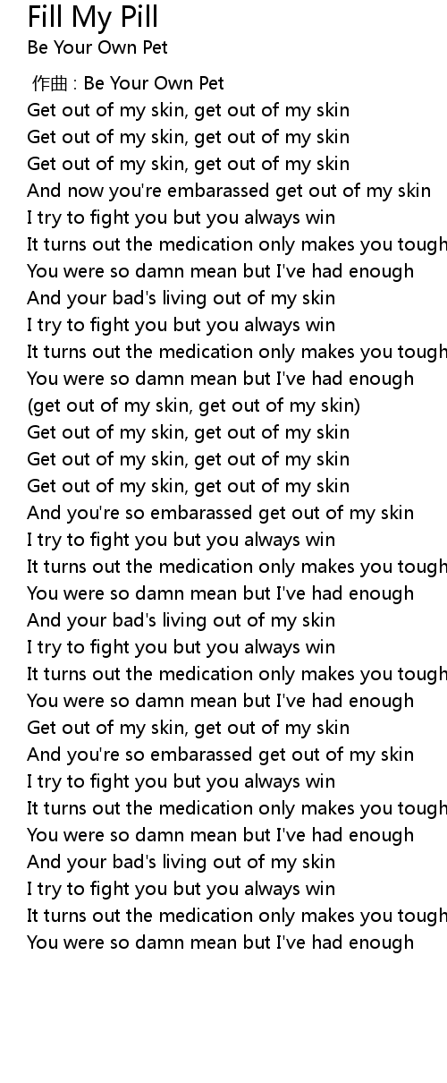 | Song | Fill My Pill |