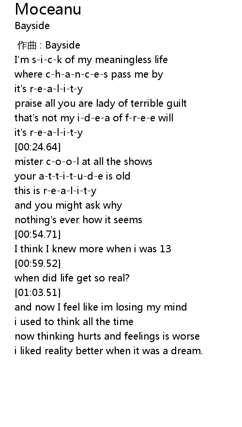 | [00:21.82] | it' s reality |