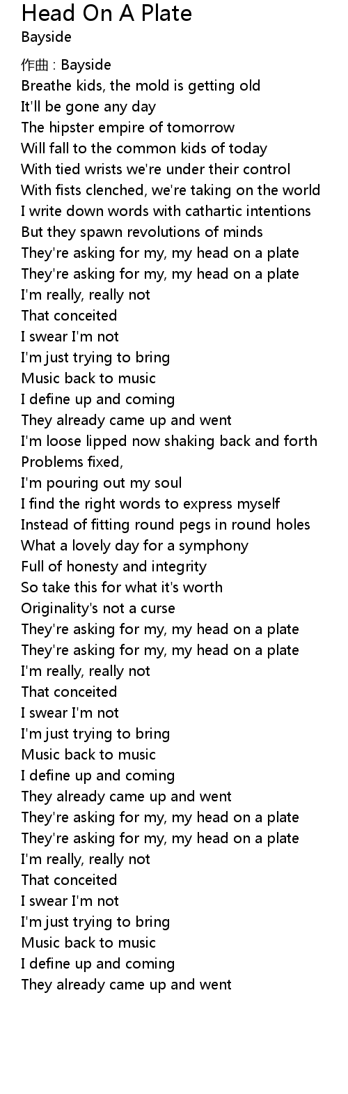 | Song | Head On A Plate |