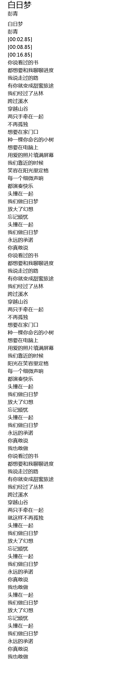 | [03:00.31] | wǒ men zuò bái rì mèng |