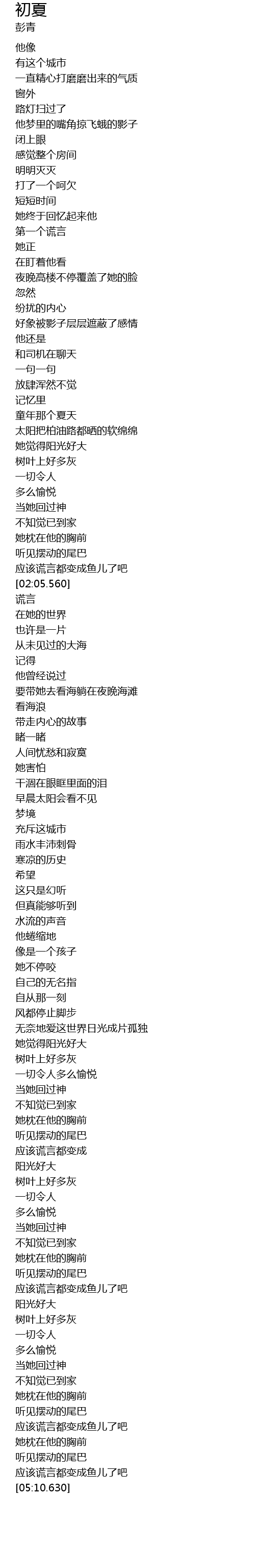 | [05:07.350] | 应该谎言都变成鱼儿了吧 |