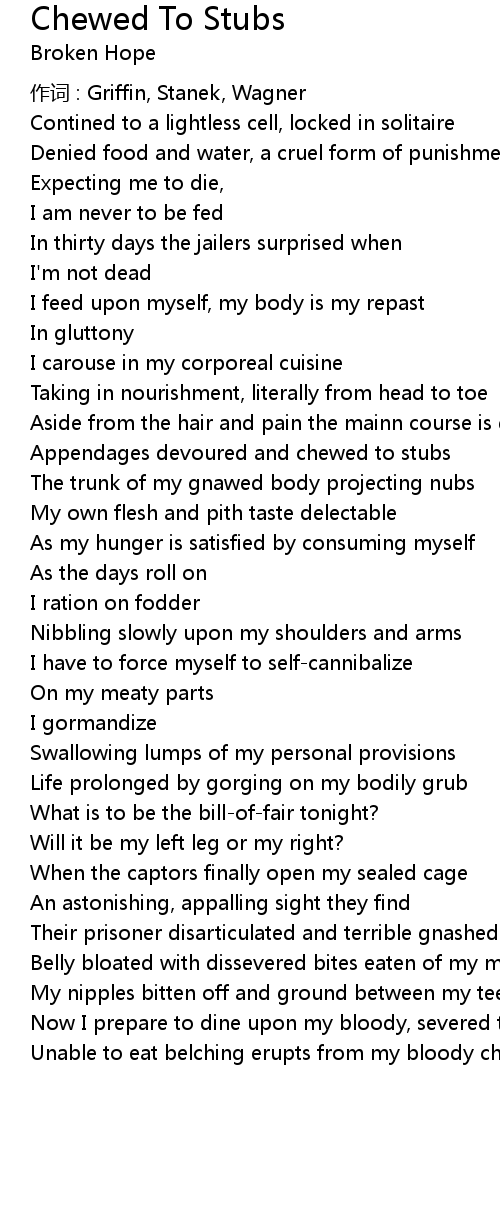 | Song | Chewed To Stubs |