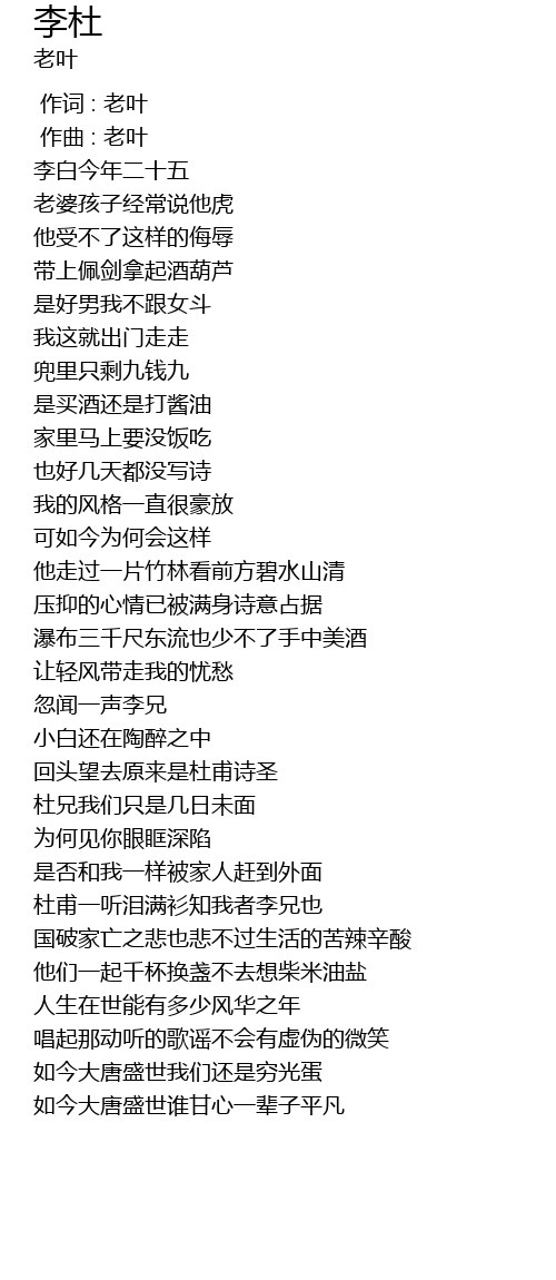 | [01:19.99] | 杜甫一听泪满衫知我者李兄也 |