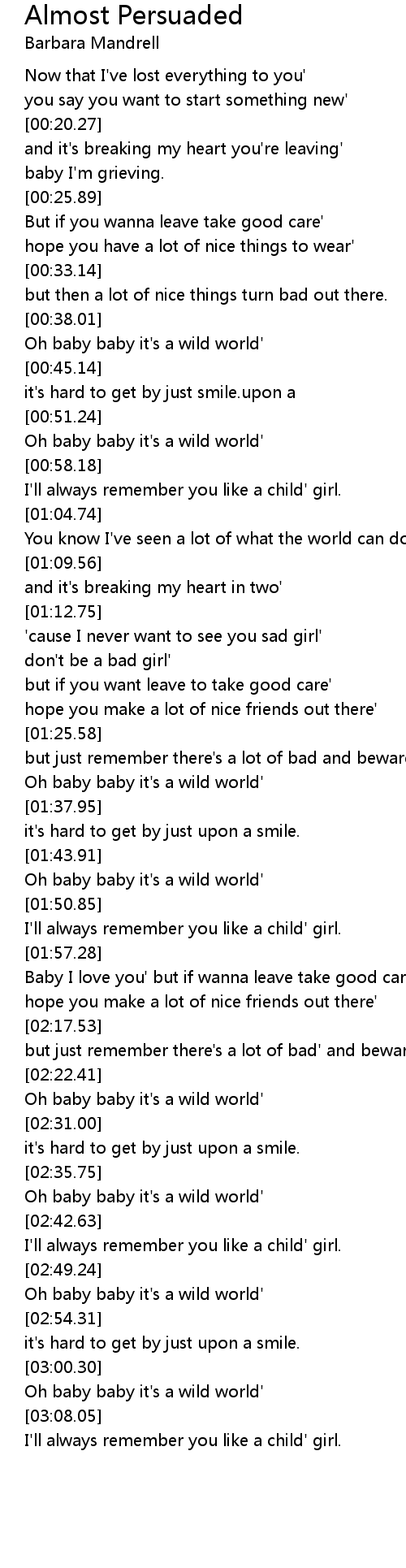 Oh baby baby it's a wild world' |