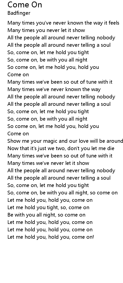 So, come on, be with you all night, so come on |