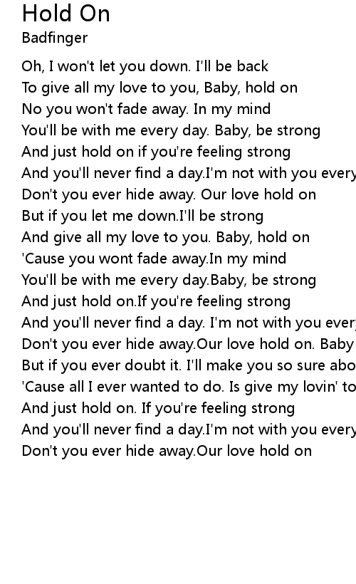 Don't you ever hide away.Our love hold on. Baby hold on |