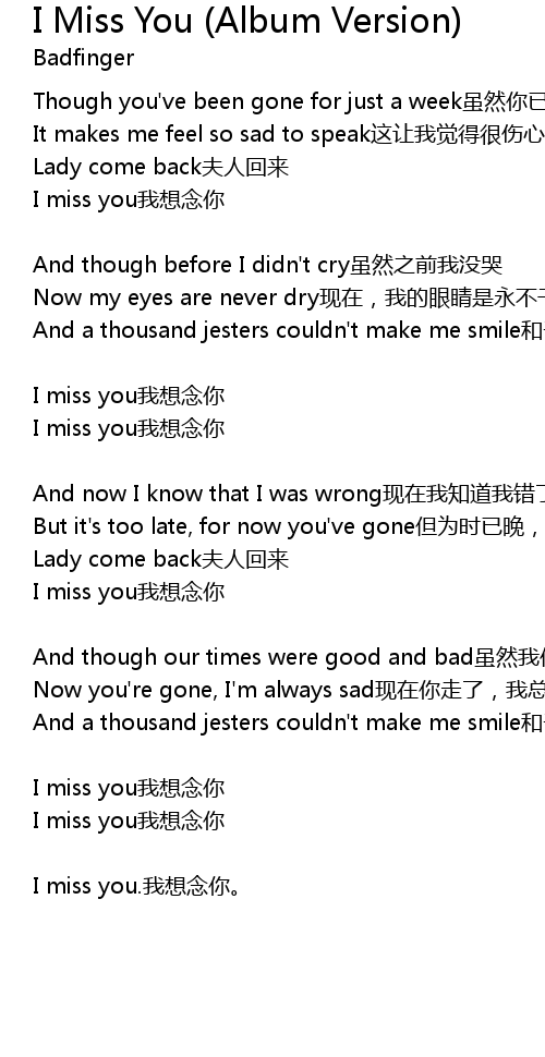 | I miss you我想念你 | |