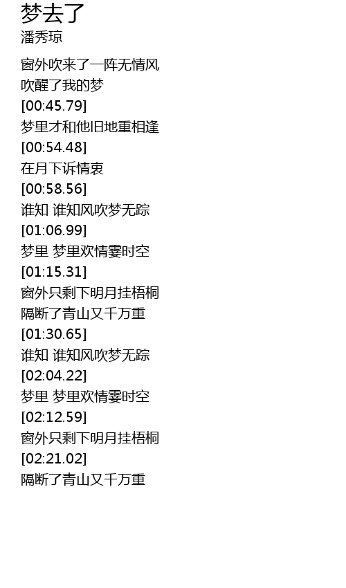 | [01:01.01] | 谁知 谁知风吹梦无踪 |