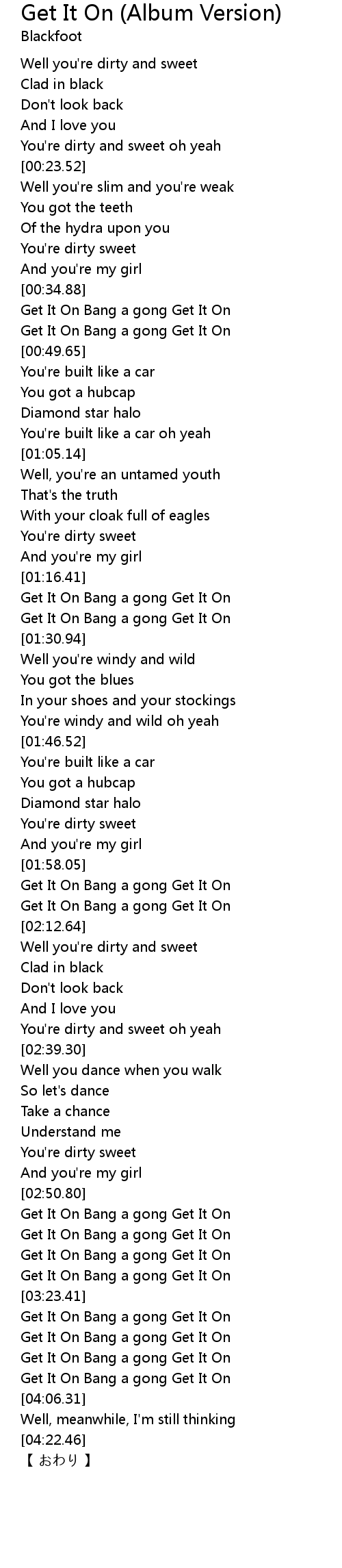 | [03:53.59] | Get It On Bang a gong Get It On |