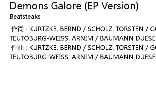 | [00:00.000] | zuo qu : KURTZKE, BERND SCHOLZ, TORSTEN GOETZ, THOMAS TEUTOBURGWEISS, ARNIM BAUMANN DUESE, PETER |