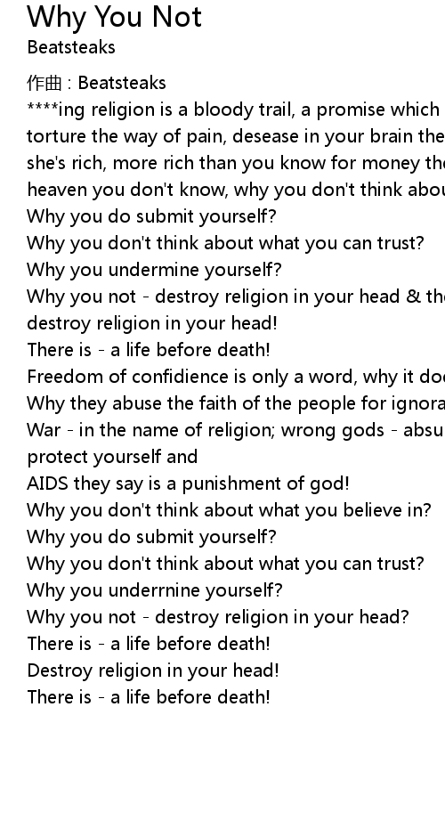 | Why you not - destroy religion in your head & there is - a life before death! destroy religion in your head! | |