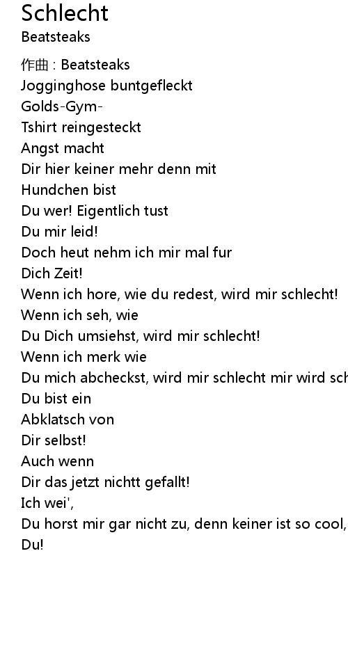| Du mich abcheckst, wird mir schlecht mir wird schlecht! | |