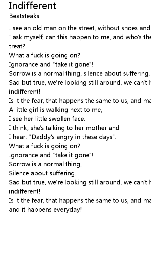 Sad but true, we're looking still around, we can't help, cause we're indifferent! |