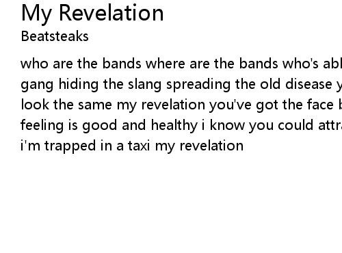 | who are the bands where are the bands who's able to make believe go with the gang hiding the slang spreading the old disease you look the same yeah you all look the same my revelation you've got the face baby i've got the taste the feeling is good and healthy i know you could attract me instead you attack me i'm trapped in a taxi my revelation |