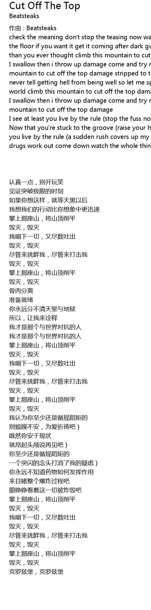 | check the meaning don' t stop the teasing now watch the ceiling crashing down to the floor if you want it get it coming after dark guess we' ll make it faster than you ever thought climb this mountain to cut off the top damage first | |