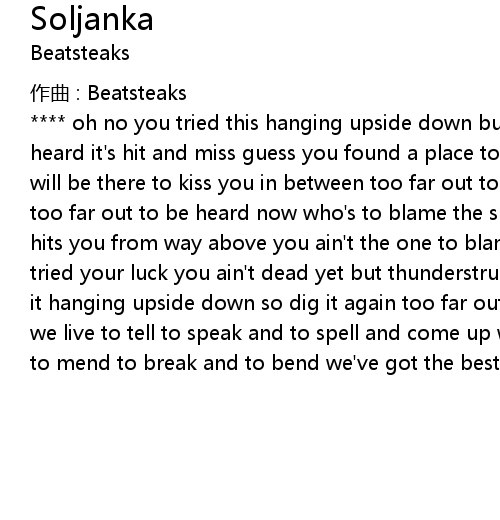 | oh no you tried this hanging upside down but dig it again too far out to be heard it' s hit and miss guess you found a place to dream your dreams someone will be there to kiss you in between too far out to be heard it' s hit and miss too far out to be heard now who' s to blame the shit came from the lord the shit hits you from way above you ain' t the one to blame my love some might say you tried your luck you ain' t dead yet but thunderstruck what you' re gonna do about it hanging upside down so dig it again too far out to be heard you hit and miss we live to tell to speak and to spell and come up with good vibrations we live to mend to break and to bend we' ve got the best intentions |