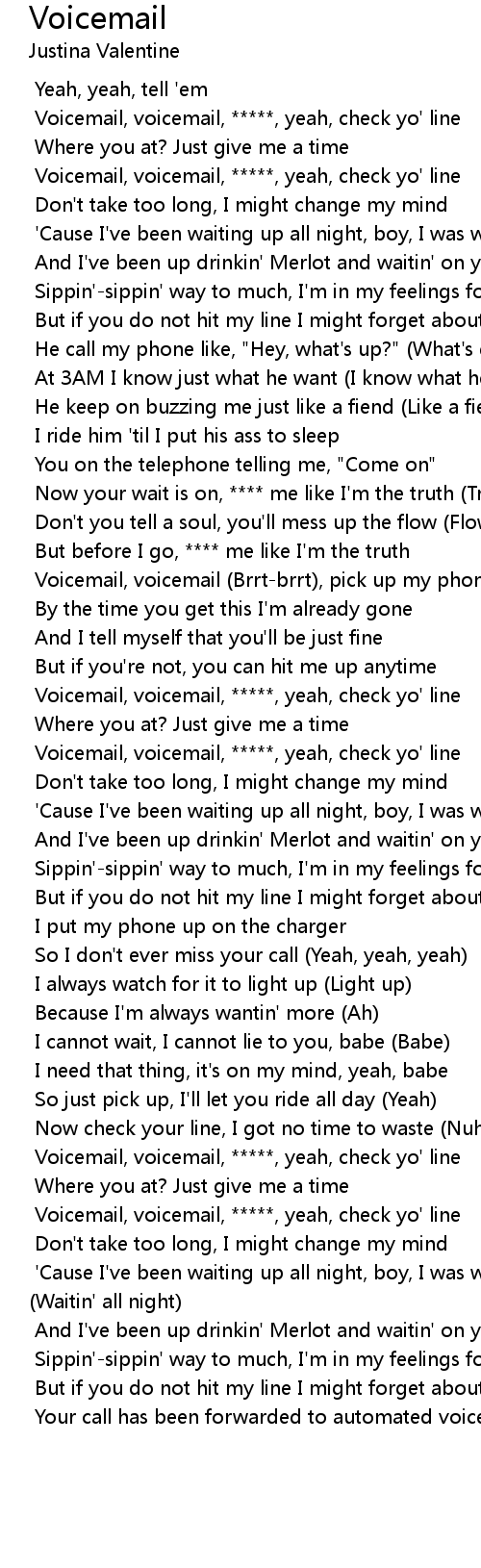 Voicemail, voicemail, *****, yeah, check yo' line |