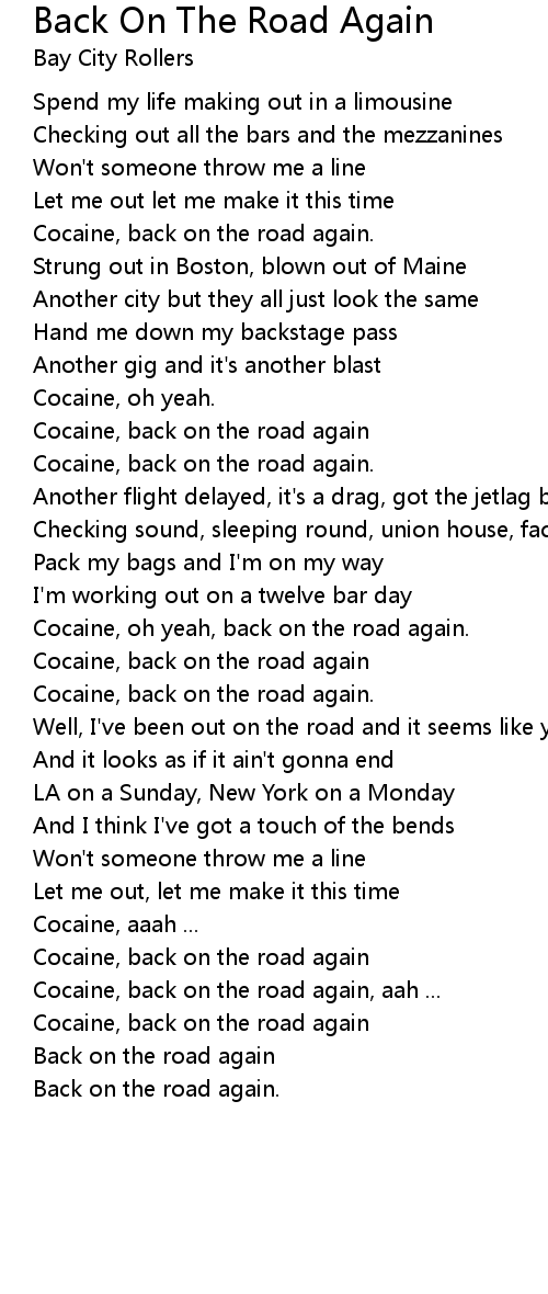 Cocaine, oh yeah, back on the road again. |