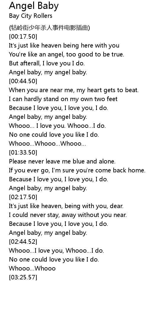 | [00:38.50] | Angel baby, my angel baby. |