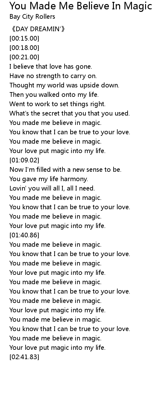 | Song | You Made Me Believe In Magic |