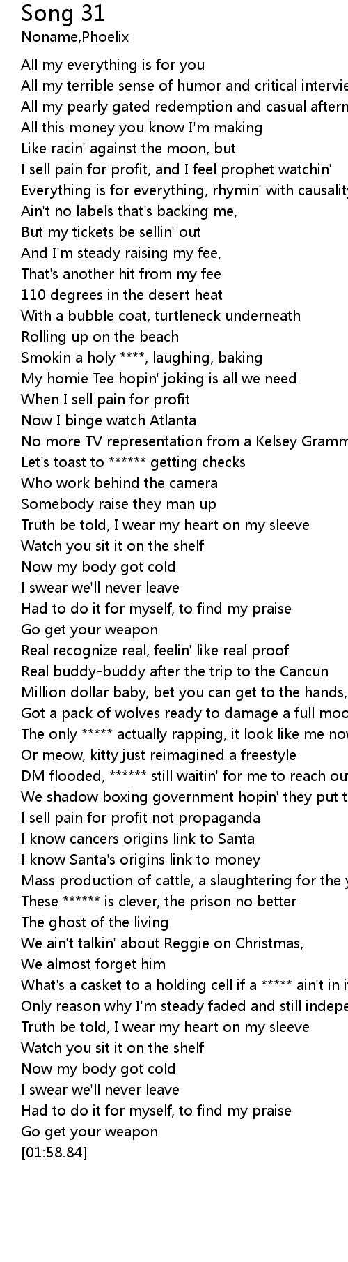| [01:11.28] | The only ***** actually rapping, it look like me now |