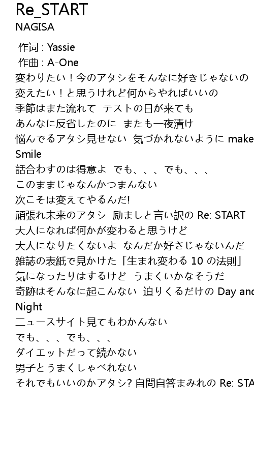 | [01:07.12] | 頑張れ未来のアタシ 励ましと言い訳の Re: START |