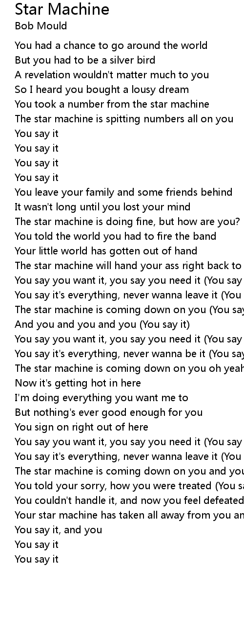 Your star machine has taken all away from you and you and you (You say it) |