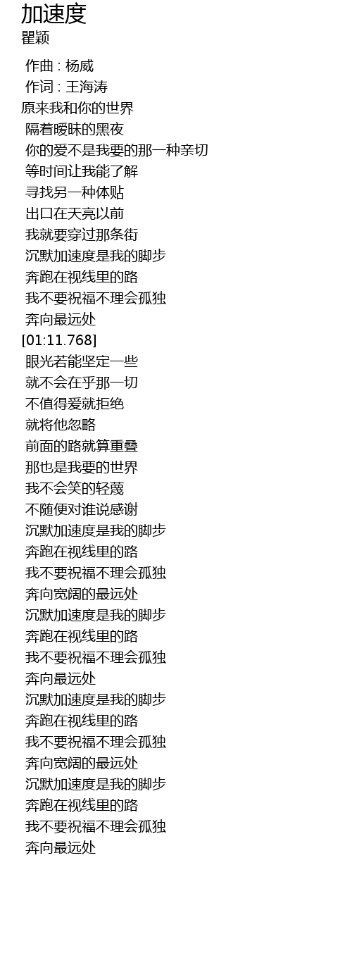 | [01:44.518] | 沉默加速度是我的脚步 |