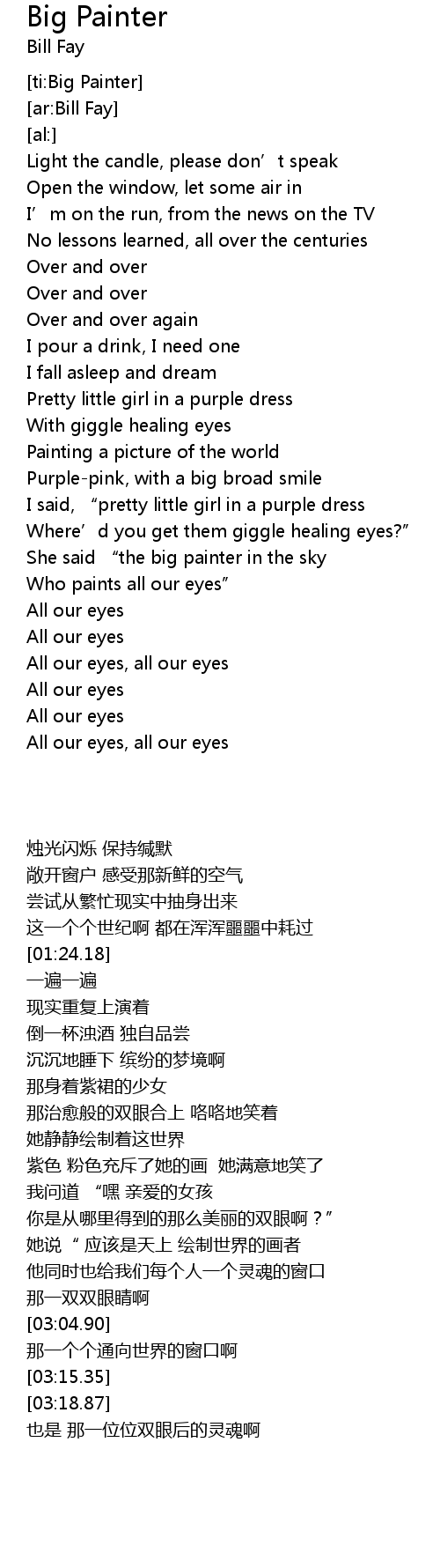 | [02:33.57] | I said, “pretty little girl in a purple dress |