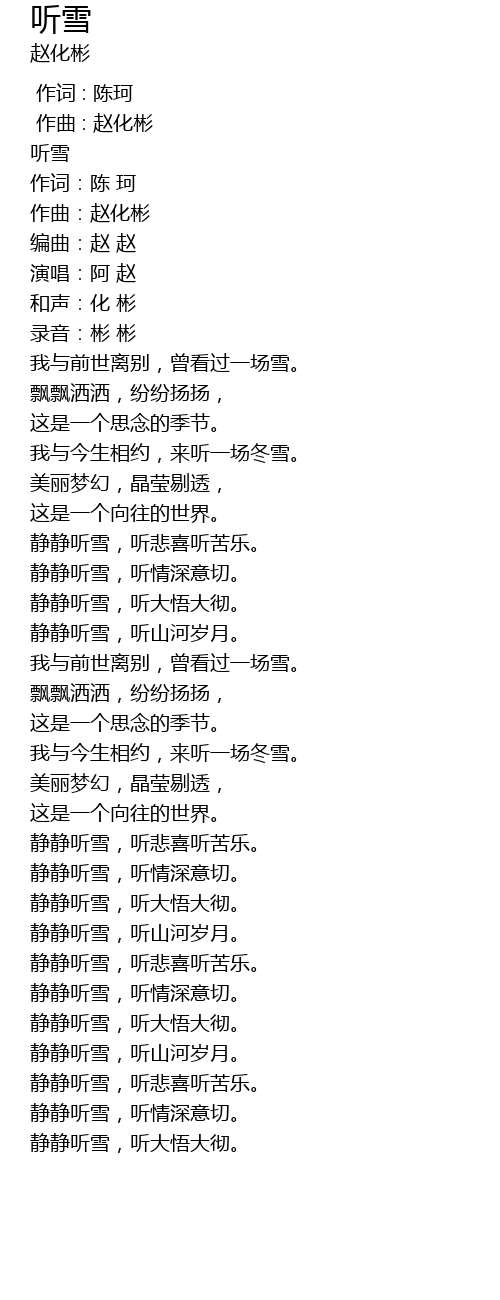 | [02:34.415] | 静静听雪,听悲喜听苦乐。 |