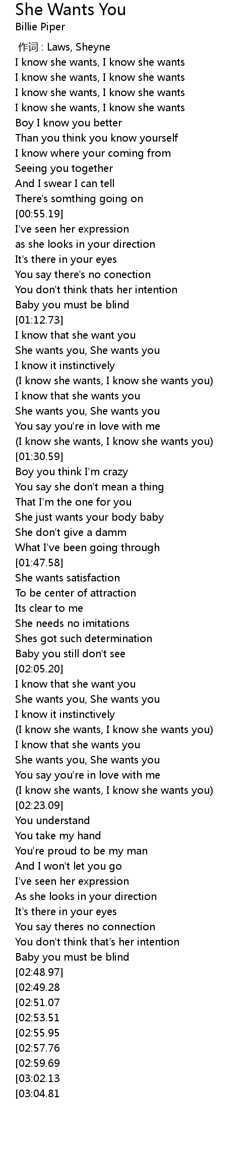 | [03:17.44][02:59.69] | She wants you, She wants you |