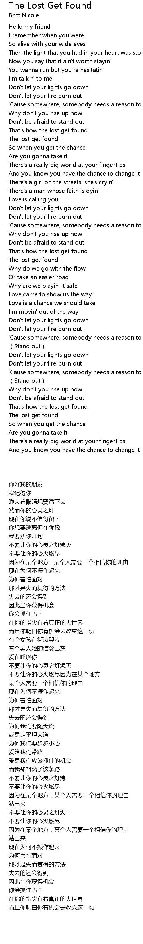 | [02:32.258] | 'Cause somewhere, somebody needs a reason to believe |