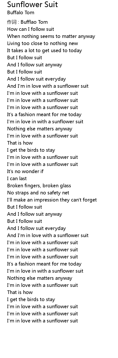 | And I' m in love with a sunflower suit | |