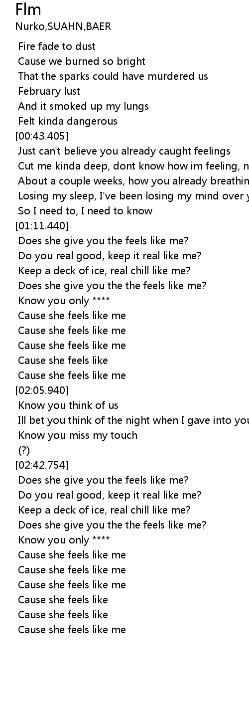 | [00:49.949] | Cut me kinda deep, dont know how im feeling, no, no |