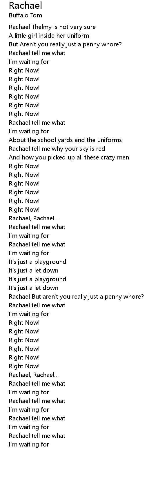 | Rachael tell me what | |