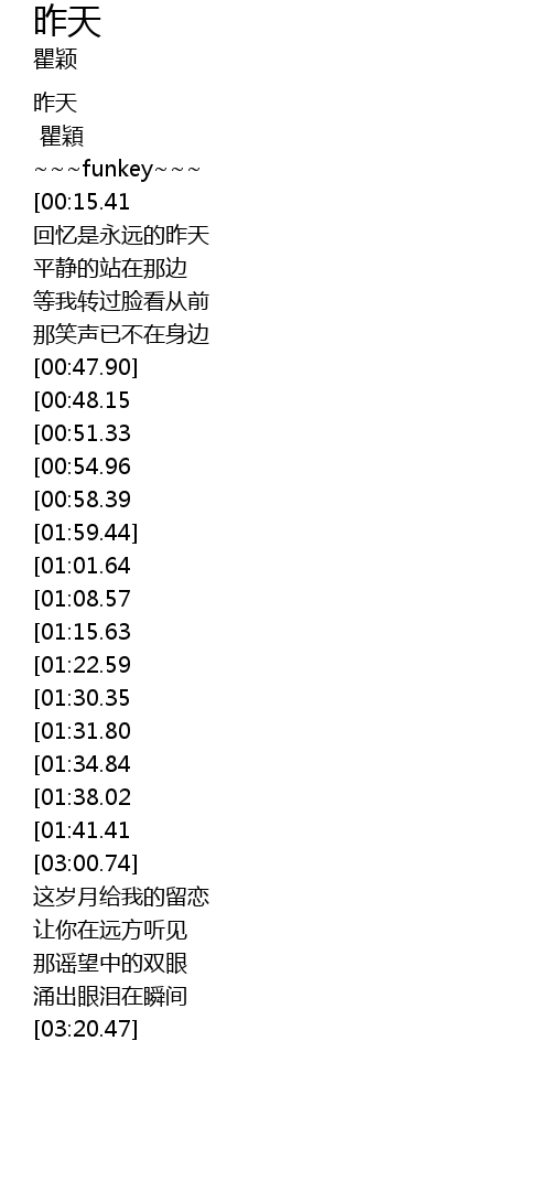 | [02:47.04][01:31.80] | you xie shi yi liu zai zuo tian |
