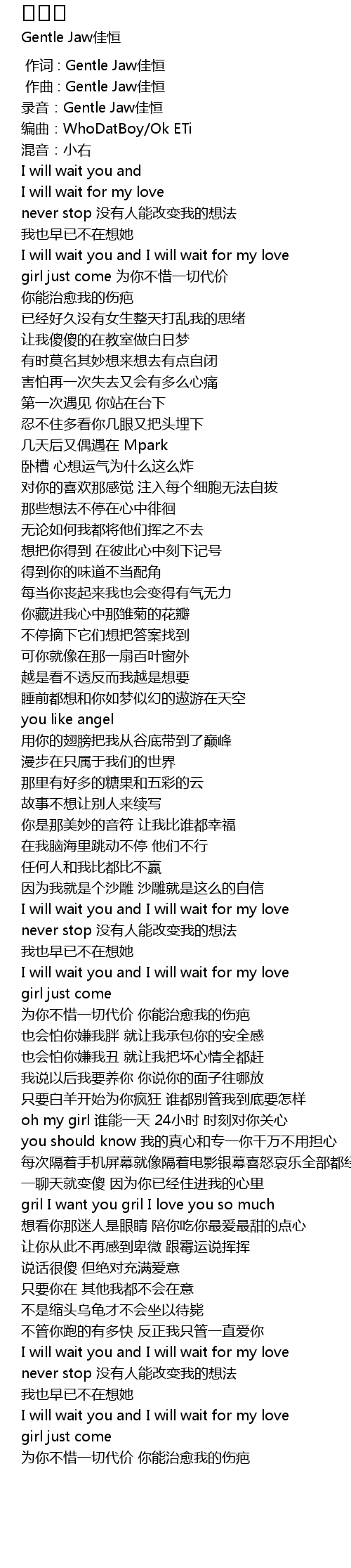 | [00:00.000] | 作词 : Gentle Jaw佳恒 |