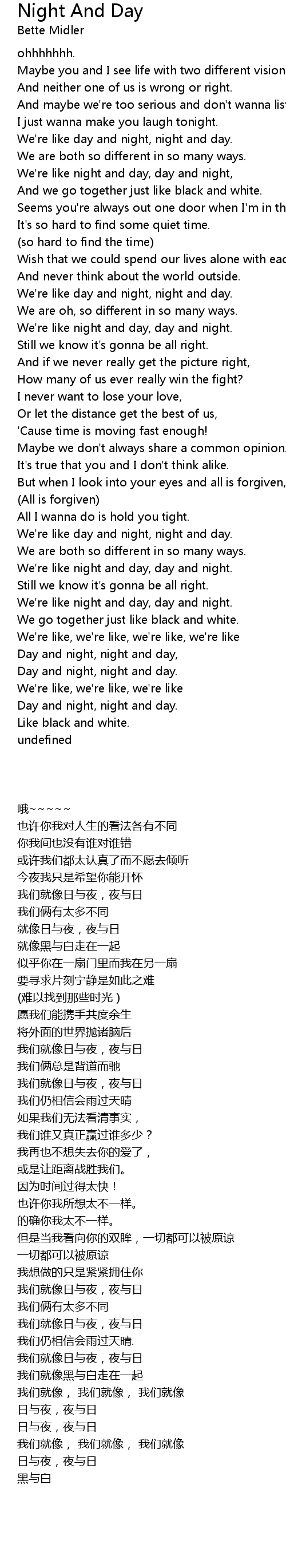 We're like night and day, day and night, |