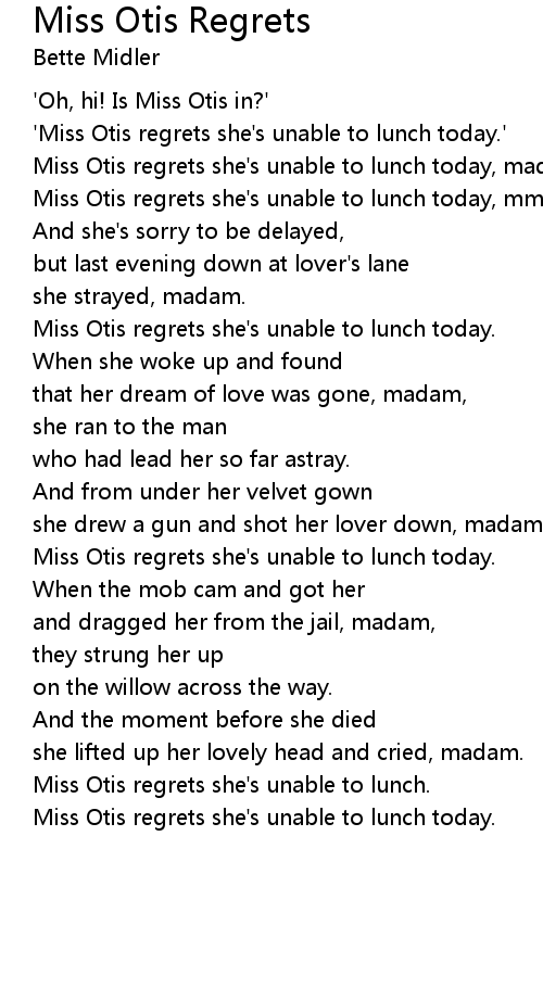 Miss Otis regrets she's unable to lunch today, mmmmmm. |