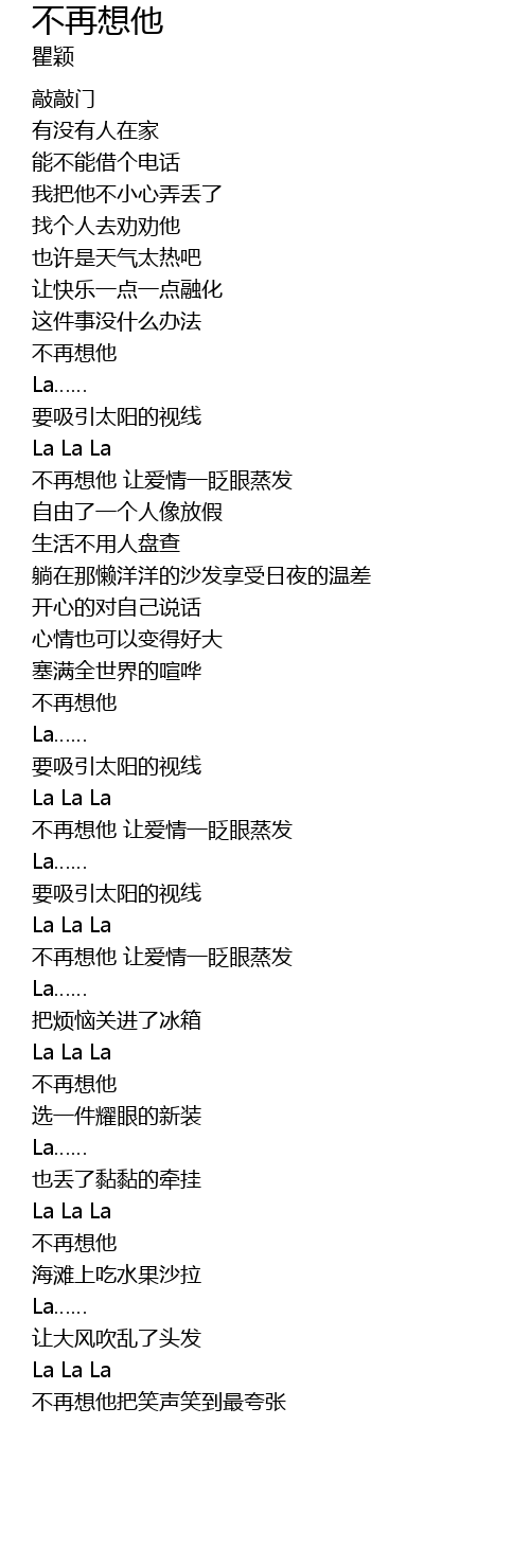 | [02:33.30] | 不再想他 让爱情一眨眼蒸发 |