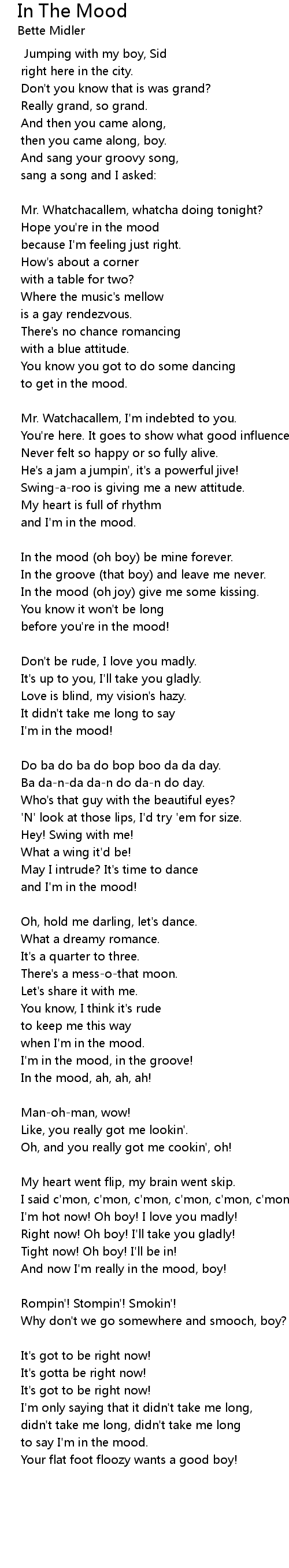 In the mood (oh boy) be mine forever. |