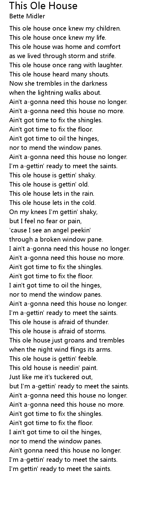 Ain't a-gonna need this house no longer. |