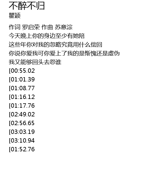 | [03:45.63][03:10.94][01:45.15] | rú jīn wǒ què shì bù zuì bù néng guī |