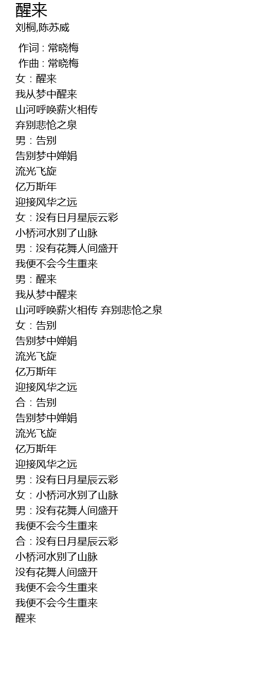 | [00:18.935] | 女:醒来 |