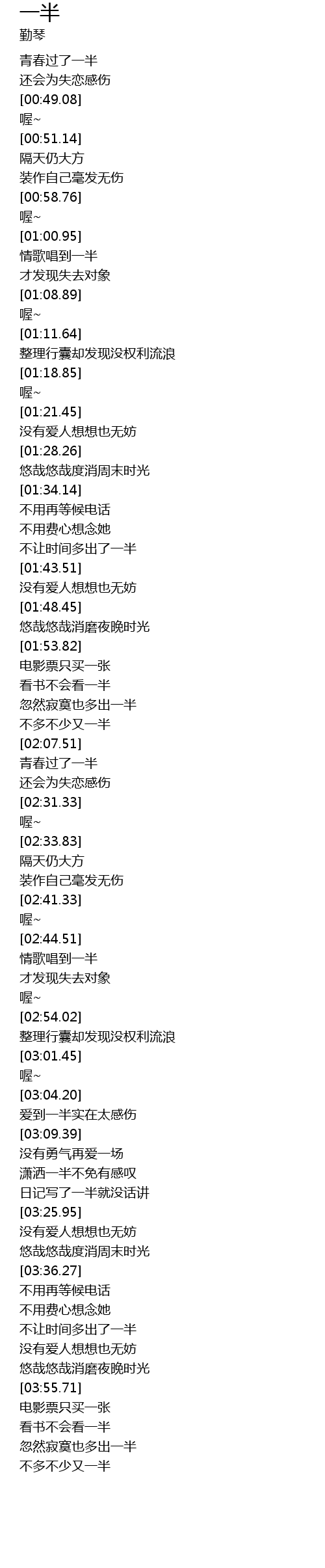 | [02:03.89] | bù duō bù shǎo yòu yī bàn |