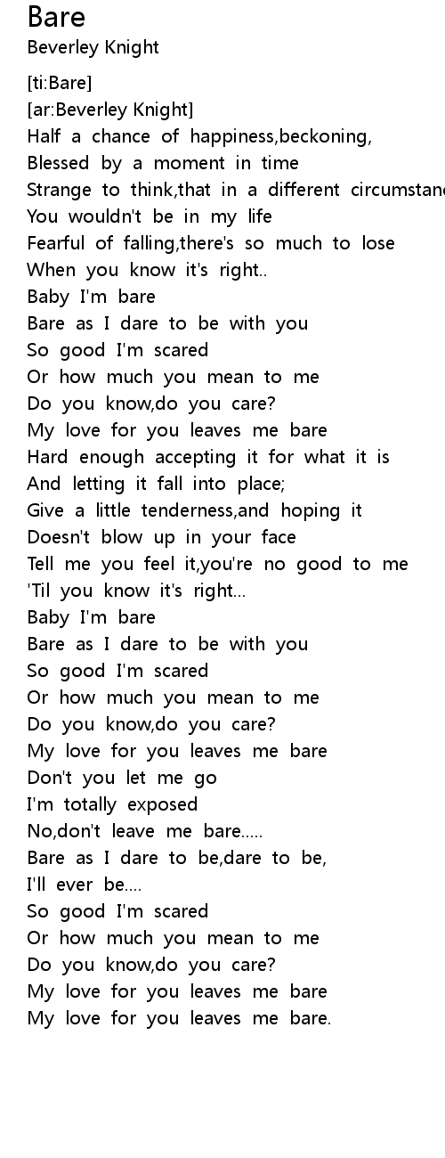 Bare as I dare to be with you |