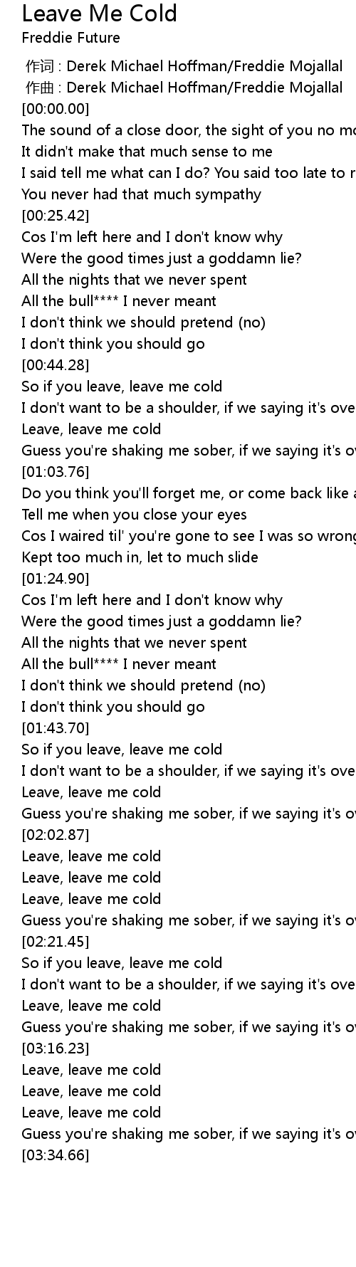 | [02:03.01] | Leave, leave me cold |